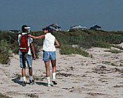 Using a differential GPS unit, students walk along the vegetation line and shoreline, mapping these features for display on Geographic Information System software. The GPS mapping provides measurements of the rate of shoreline change. |