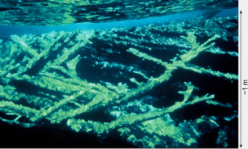 zone of the Belize barrier reef composed of wave-resistant Acropora palmata