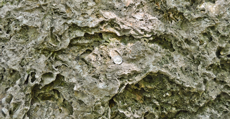 A scenic hike leads from a trailhead 1.4 miles to Gorman Falls. The first mile is gently level but very rocky. Much of it follows a few beds of thin-bedded Gorman carbonate with spectacular trace fossils (worm burrows). At 1.2 miles, there is a trail junction (spring to right, falls to left); the falls trail then goes along and steeply down some massive paleo-tufa to a viewpoint at the base of Gorman Falls. The Falls are a massive tufa deposit with stalactites and stalagmites, ferns and moss, and lots of waterfalls—an incredibly scenic place after crossing the scrub ranchland. The tufa forms as the outflow of a major spring with karstic (cave) drainage of a good bit of the Ellenburger.
