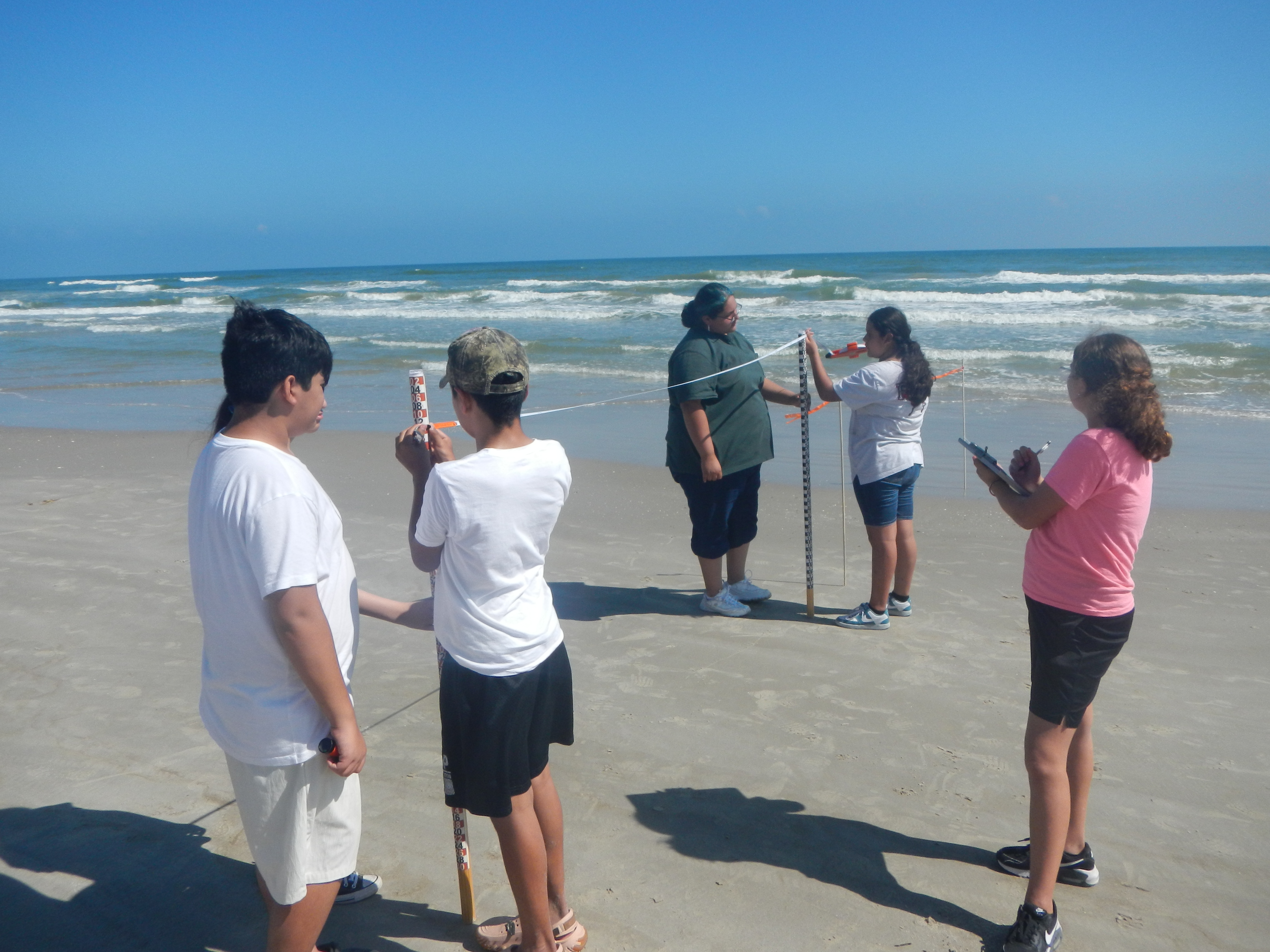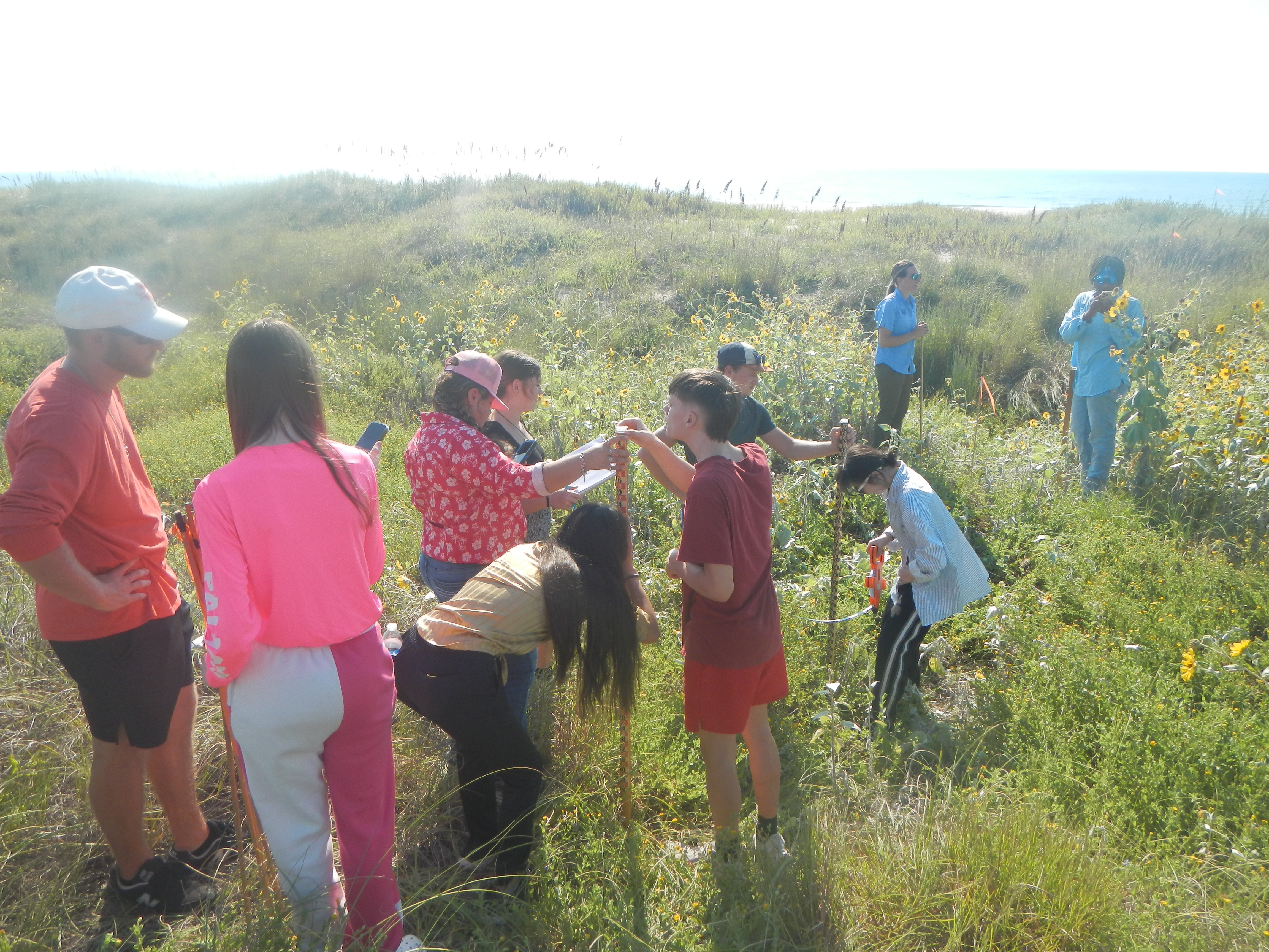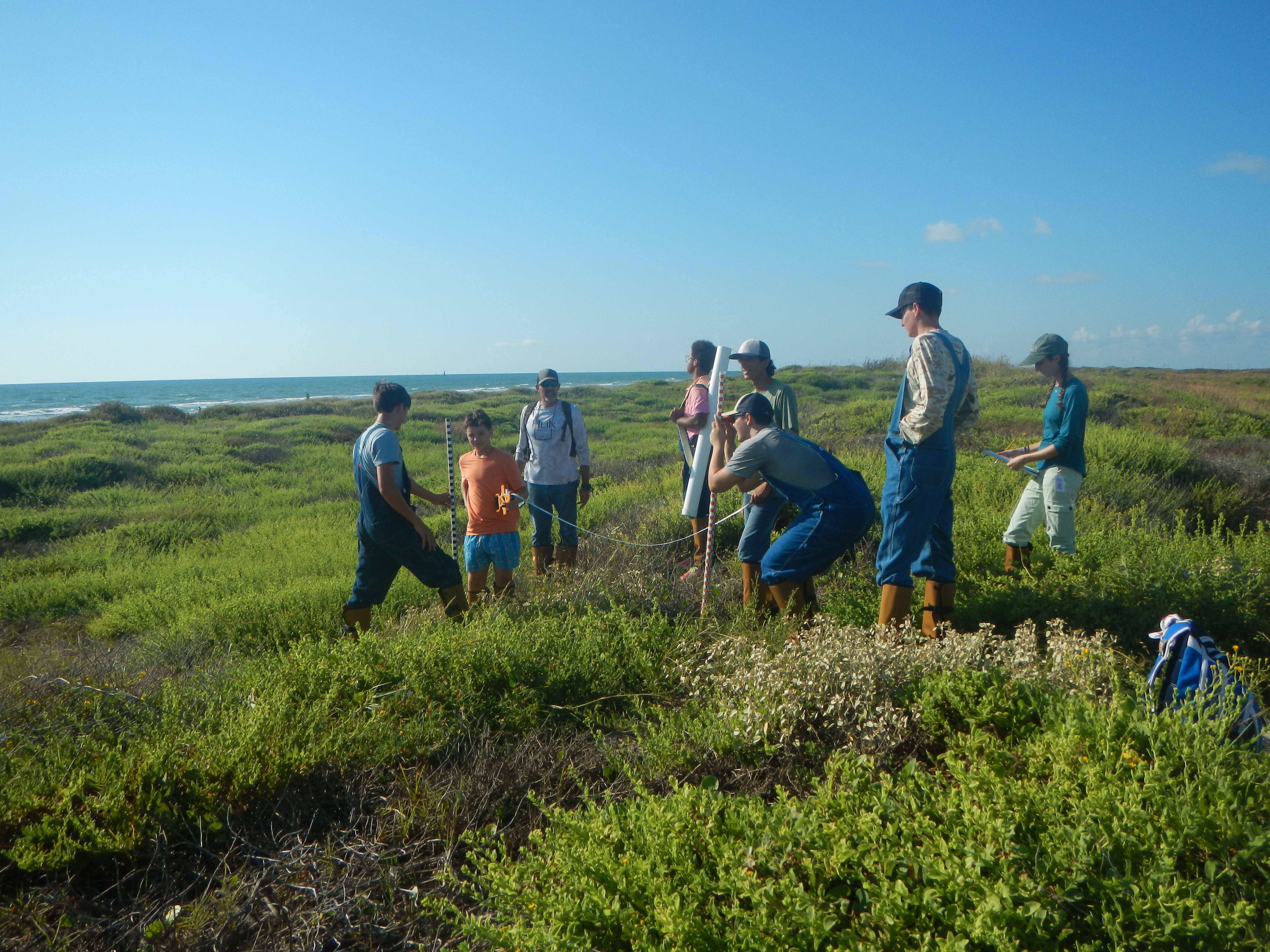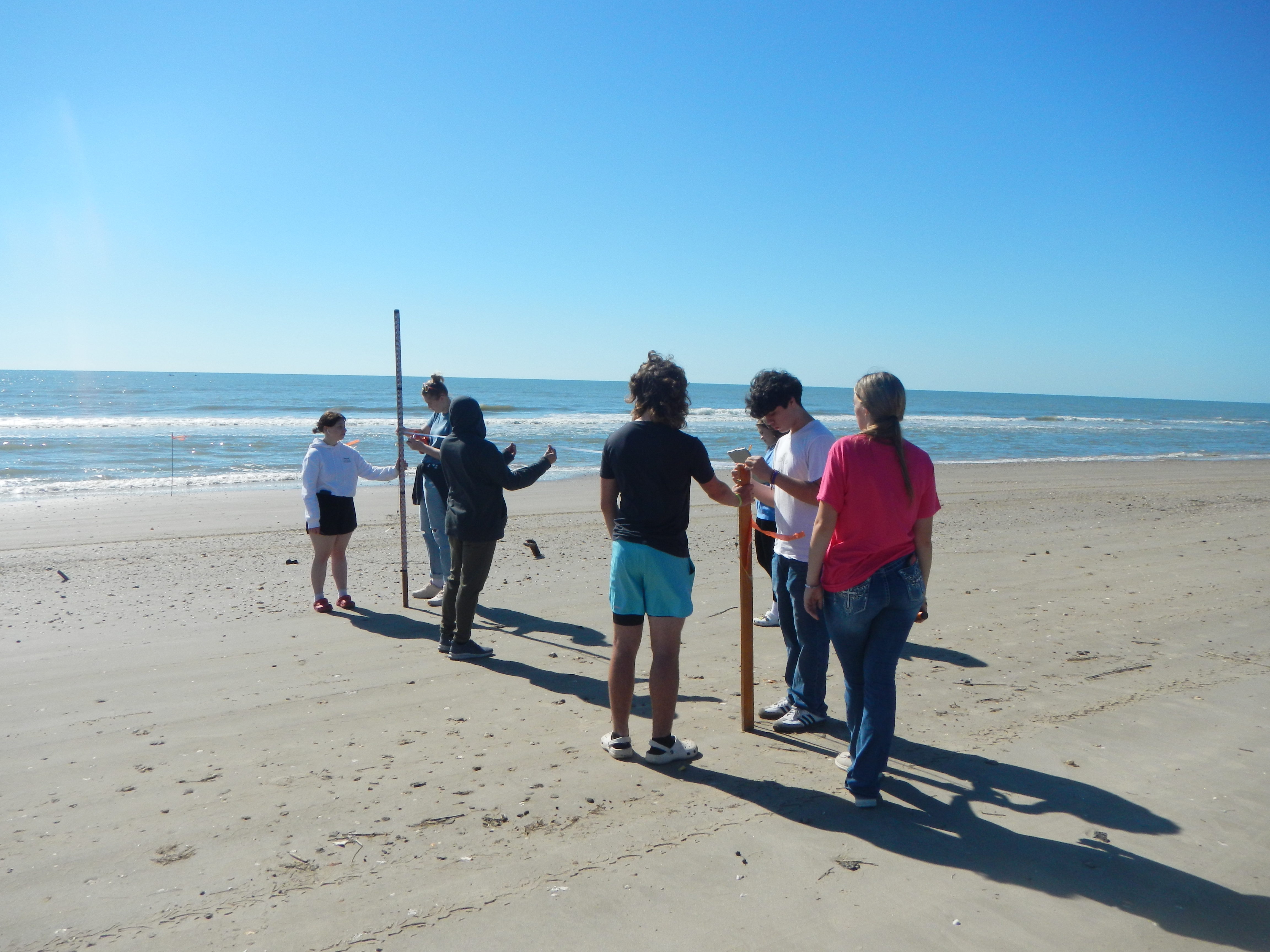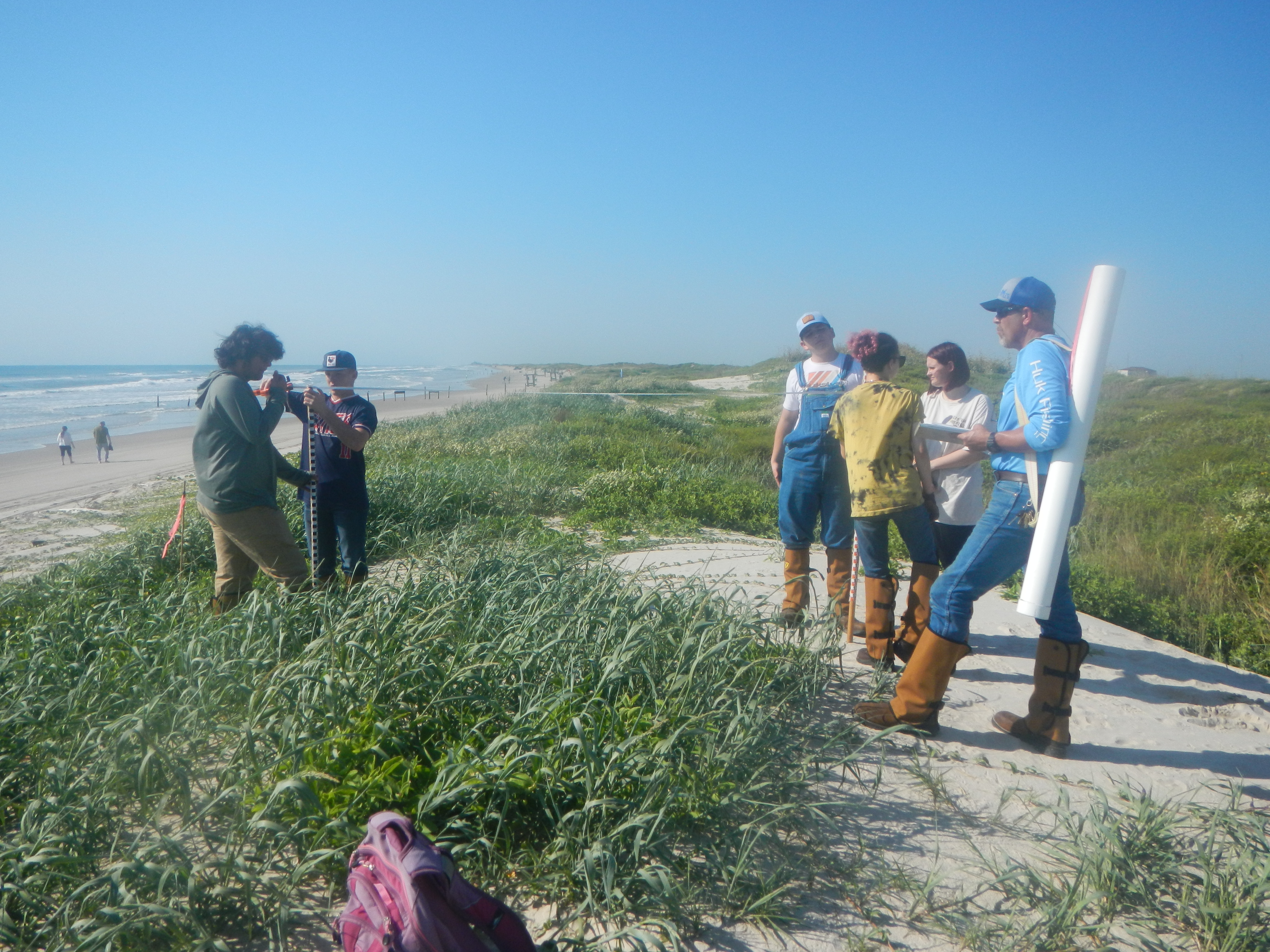 THSCMP is a research and outreach project that engages students living on the Texas coast in the study of the dynamic coastal environment. Bureau scientists work with middle and high school students and teachers, showing them how to measure topography, map vegetation lines and shorelines using GPS, and observe weather and wave conditions. The students are active participants in the research project, which has the dual benefit of enhancing their science education and while providing their coastal communities with valuable data on their changing shoreline. THSCMP students monitor the beach and dune system on Bolivar Peninsula, Galveston Island, Follets Island, Matagorda Peninsula, Mustang Island, northern Padre Island, and South Padre Island. The collected data has been used to investigate beach, dune, and vegetation-line recovery following tropical cyclones; monitor the effects of nourishment projects, beach maintenance practices, and jetty construction; and used in verifying shoreline positions for updates of Texas’ long-term shoreline change rates.